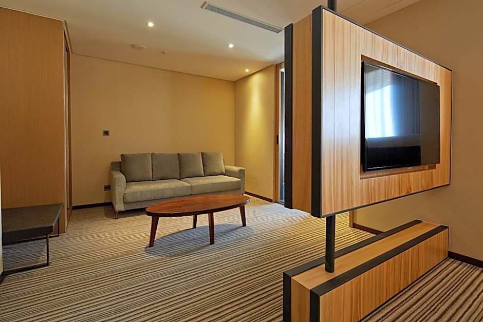 This air-conditioned suite consists of 1 living room, 1 separate bedroom and 1 bathroom with a walk-in shower. The suite provides a flat-screen TV with cable channels, soundproof walls, a tea and coffee maker, a wardrobe as well as city views. The unit offers 1 bed.